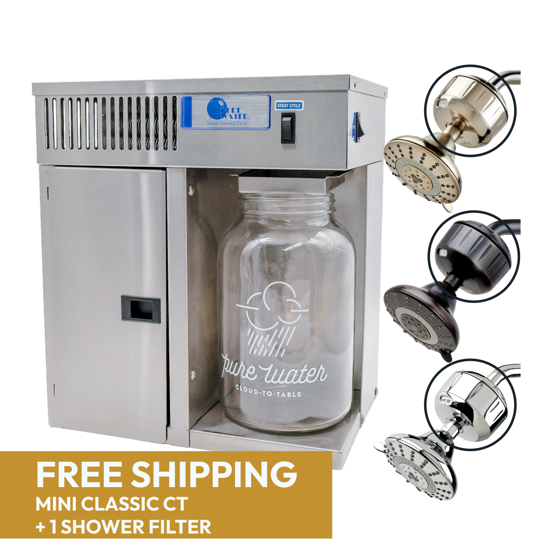The Pure Water Mini Classic CT™ Countertop Water Distiller makes it easy to get 99.99+% pure vapor-distilled water in the comfort of your home! Countertop water distillers are popular because they are easy to use and do not require installation. This ingenious appliance never lets your water come in contact with plastic during the purification process because it is constructed from high-quality 304-grade stainless steel. This made-in-the-USA water distiller is built to last and backed by the industry’s best warranty! The Mini Classic CT will provide you and your family with safe, fresh, delicious vapor-distilled water for years to come.